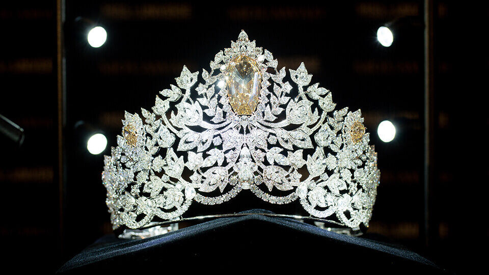 Taking its inspiration from the universal themes of nature, strength, beauty, femininity and community, the crown was created with 18-karat gold and handset with more than 1,770 white diamonds and three golden canary diamonds. These hundreds of diamonds are set in intricate motifs of petals, leaves and vines, representing the communities of women from around the world whose bonds unite them and remind us we are stronger together than apart. The crown’s centrepiece, a shield-cut golden canary diamond weighing a magnificent 62.83 carat, and its harmony with the diamonds surrounding it, symbolizes the golden age of women, where they are celebrated for being strong, complex, diverse and unapologetically ambitious.